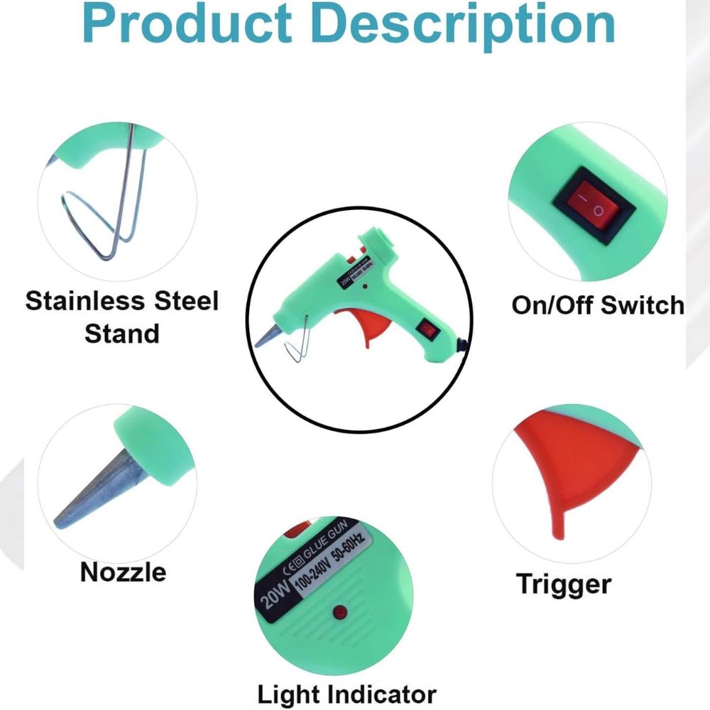 his glue gun boasts an ergonomic design with a comfortable grip, making it easy to hold and control during use. The lightweight construction ensures minimal hand fatigue, allowing for extended periods of use without discomfort.